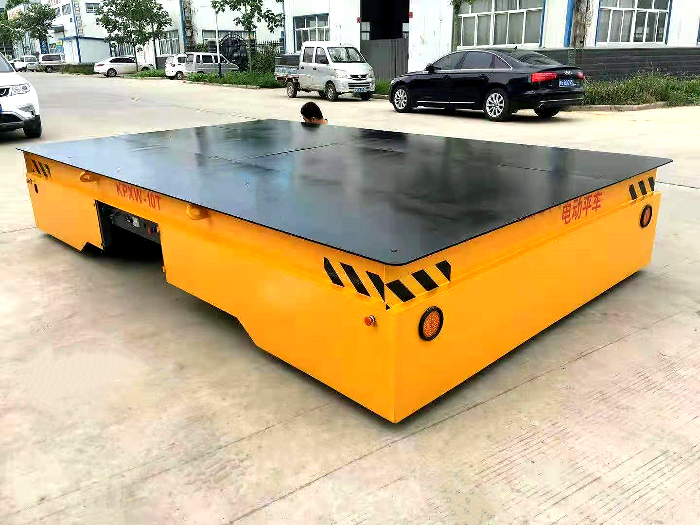電動平車,又稱電動平板車、電平車、臺車、過跨車、電動軌道車、地爬車等,是一種廠內有軌電動運輸車輛,首先它是一種軌道型運輸車輛,需要在地面上鋪設軌道,軌道一般為工字型面接觸道軌;其次它是電驅動車輛,在電機減速機驅動下自動運行,再次它是一種平板車,臺面平整無廂蓋,特殊情況下也可以是非平面但無廂蓋,車體無方向盤只有前進后退方向(即使轉彎也城靠軌道轉彎)。